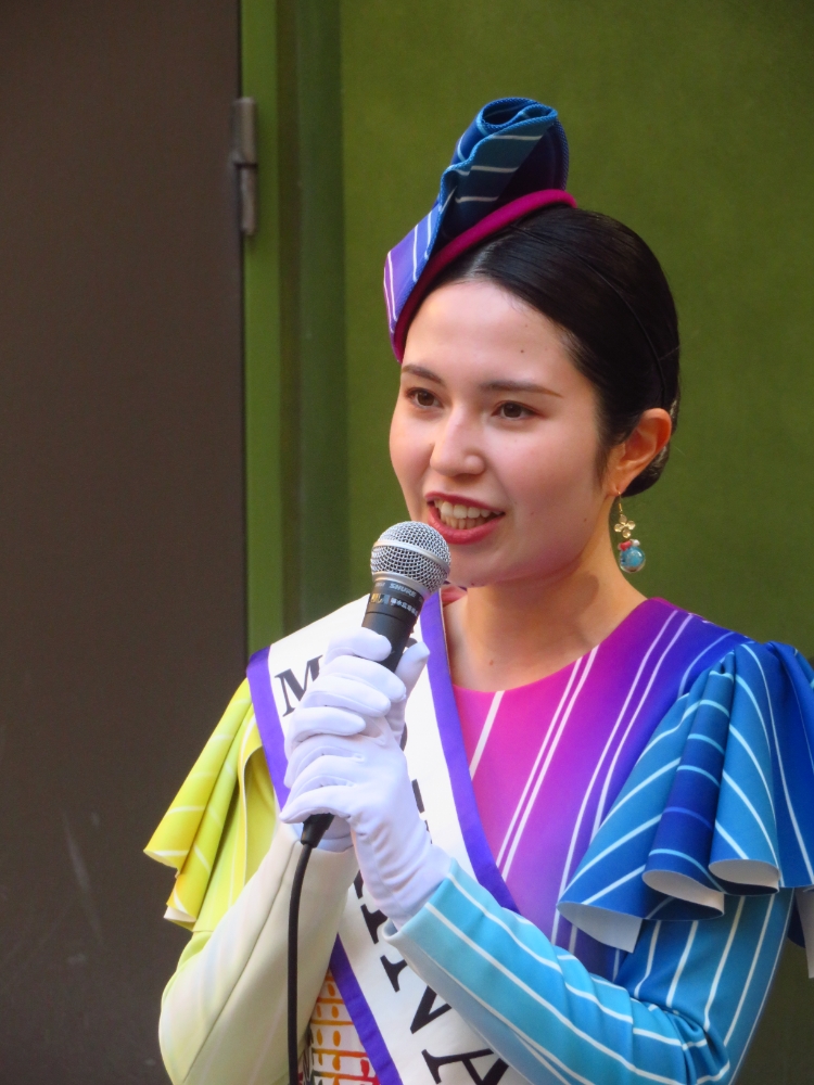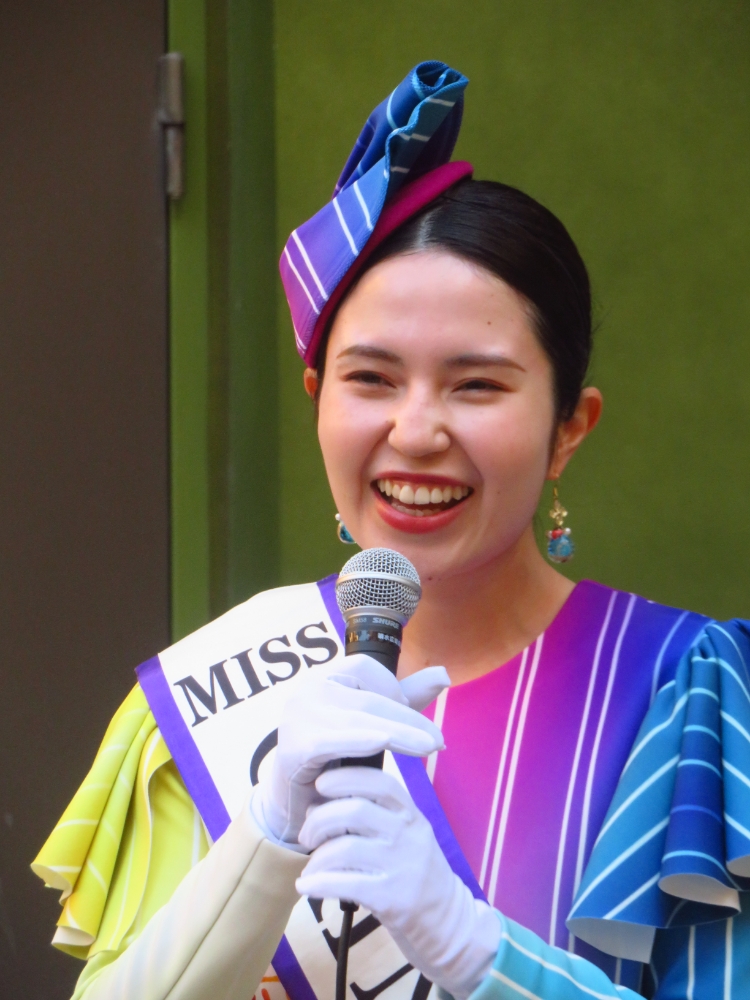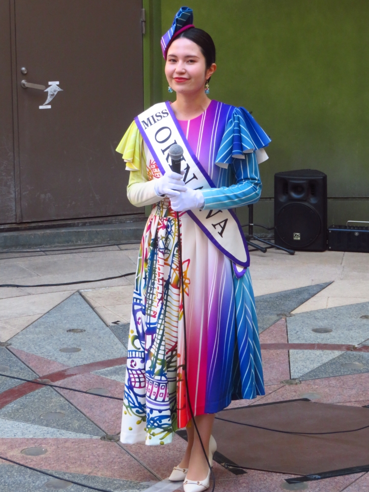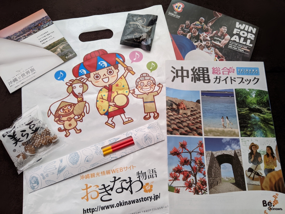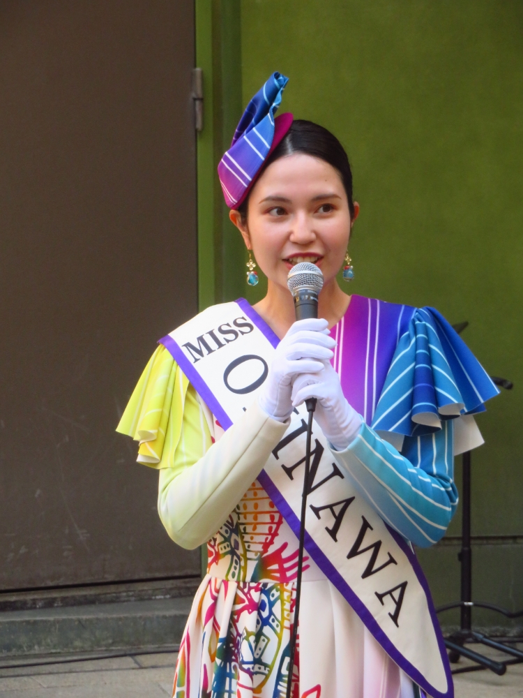 「美ら豆」か「熱中塩黒糖」のどちらかは、ミス沖縄の翁長愛音さんから手渡されたものです。